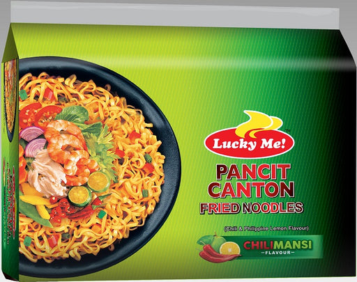 フィリピンの定番インスタント麺「パンシットカントン」のチリマンシーフレーバー。唐辛子の辛さと、カラマンシーの酸味が絶妙なバランスです。