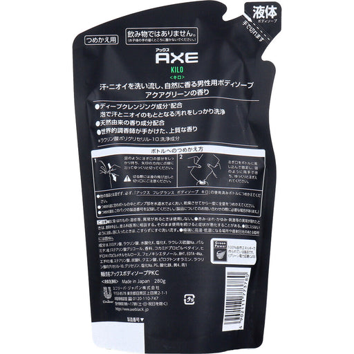 自然に香り、肌にやさしい洗い上がりのフレグランスボディソープ。●ディープクレンジング成分(ラウリン酸ポリグリセリル-10)配合!泡で汗とニオイのもととなる汚れをしっかり洗浄。●天然由来の香り成分配合。●世界的調香師が手がけた、上質なアクアグリーンの香り。●つめかえ用。【化粧品】販売名:アックス...