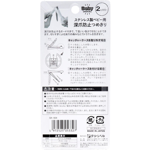 グリーンベル ステンレス製 ベビー用 深爪防止ツメキリ BA-004
