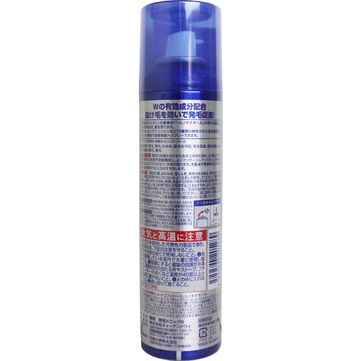 ジェット噴射で地肌に届く!液だれしにくい微発泡タイプ!Wの有効成分配合!●有効成分(ビタミンE誘導体・ヒノキチオール)が発毛を促進し、抜け毛を防ぎ、髪を育てます。●アロエ・センブリ・ニンジンなど12種類の植物エキス(保湿剤)配合。●ジェット噴射で直接地肌へスプレーできます。【医薬部外品】【成分...