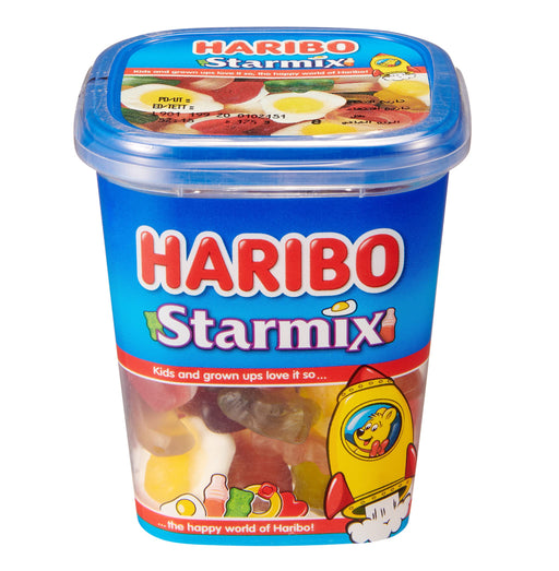 カラフルで楽しい!ハリボーの定番グミ、スターミックスが便利なカップ入りで登場!星形、ハート形、クマちゃんなど、可愛い形とフルーツの味わいをたっぷり175g楽しめます。