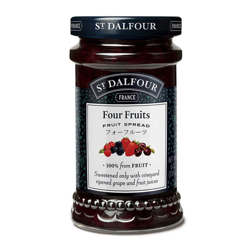 4種の果実のハーモニー!サン・ダルフォー フォーフルーツは、イチゴ、ラズベリー、ブラックベリー、ブルーベリーを使った、贅沢な味わいのフルーツスプレッドです。