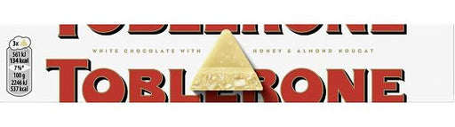 スイスの象徴!三角形のチョコレートでおなじみ、トブラローネ ホワイトチョコレート。ホワイトチョコレートのミルキーな甘さと、ハチミツとヌガーの風味が絶妙です。