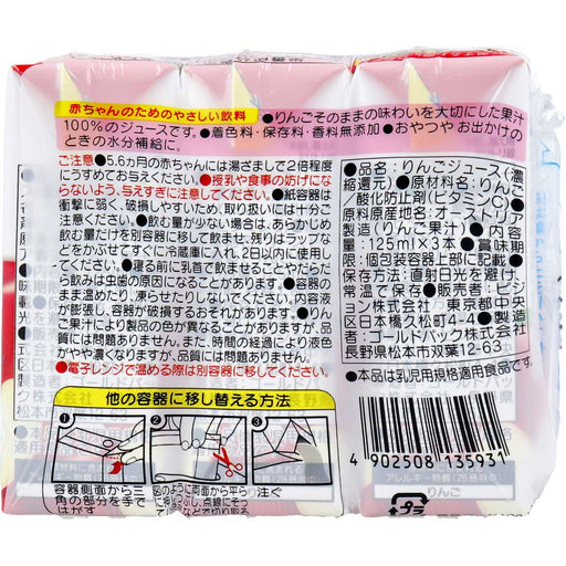 詳細を全部見るピジョン 紙パックベビー飲料 りんご100 125mL×3個パック