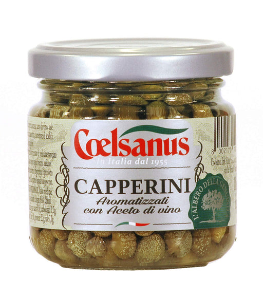 イタリア産のケッパーを酢漬けにしました。パスタやピザのアクセントにどうぞ。おすすめキーワード: ケッパー, 酢漬け, チェルサヌス, イタリア産, 100g